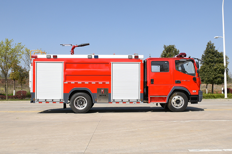 福田泡沫消防车是由二类汽车底盘、罐体、水泵、管路、仪表电路系统等部件组成,该车装配铝合金后爬梯(可拆卸),泵房在整车尾部,罐体为钢板焊接式,水罐材质为优质碳钢板,罐体内部做防腐处理,载水4.5方,泡沫罐材质为优质不锈钢板,载泡沫液1.5方。该车装备的CB10/30消防泵,PL8/24两用消防炮。