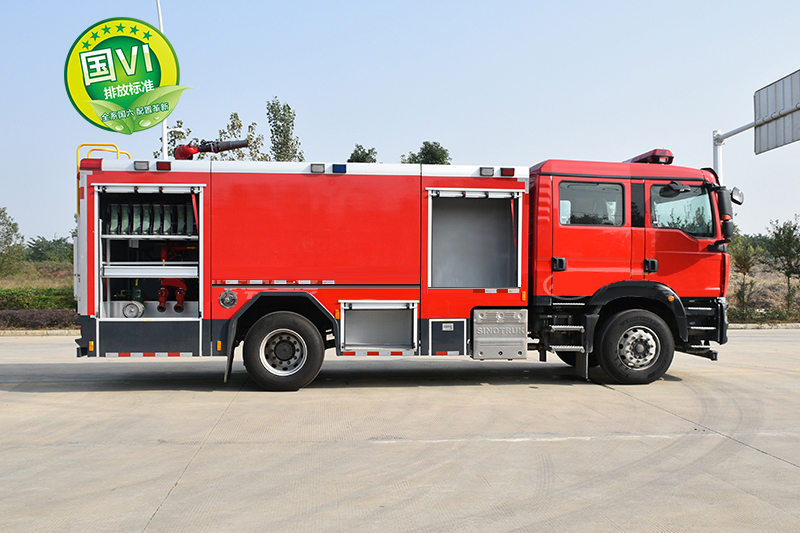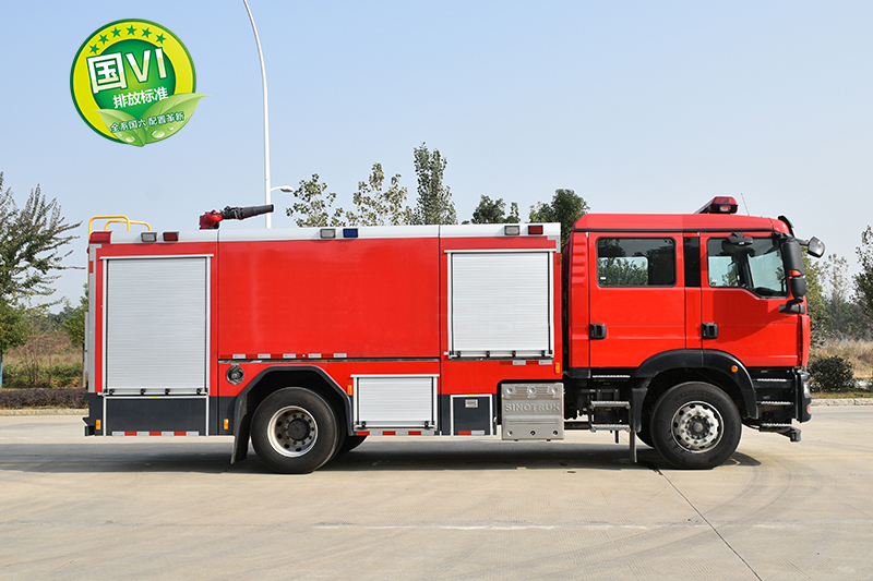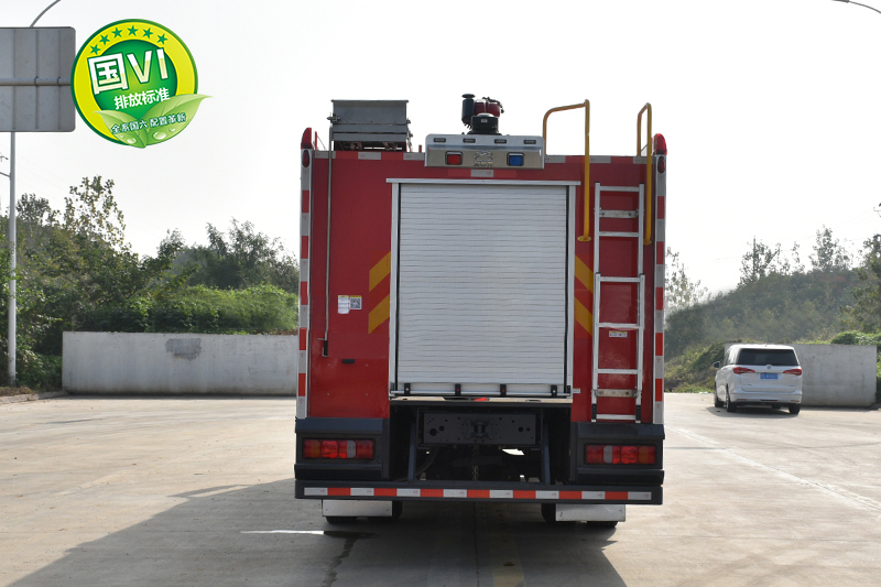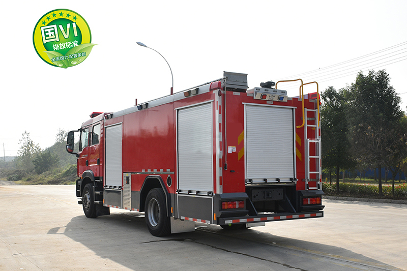 汕德卡单桥泡沫消防车是由二类汽车底盘、罐体、水泵、管路、仪表电路系统等部件组成,该车装配铝合金后爬梯(可拆卸),泵房在整车尾部,罐体为钢板焊接式,载液量8.0方(水6.0方/泡沫2.0方),水罐材质为优质碳钢板,水罐内部做防腐处理,泡沫罐为不锈钢材质。该车装备希尔CB10/60-MBP消防泵,阿密龙PLKD48ZB-5177E型遥控炮。